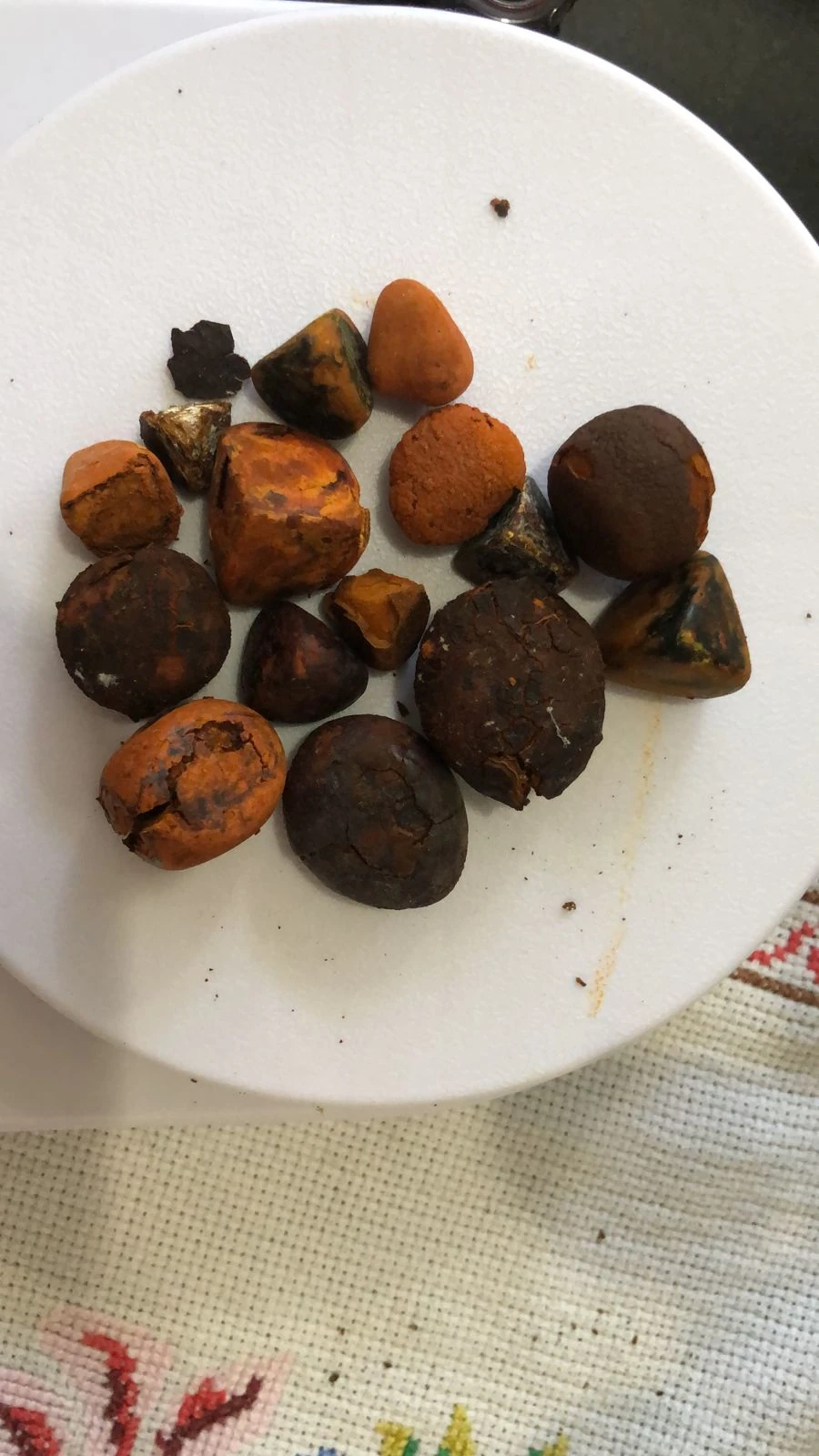 Manipule as pedras de fel com cuidado, pois se tornam frágeis após a secagem.